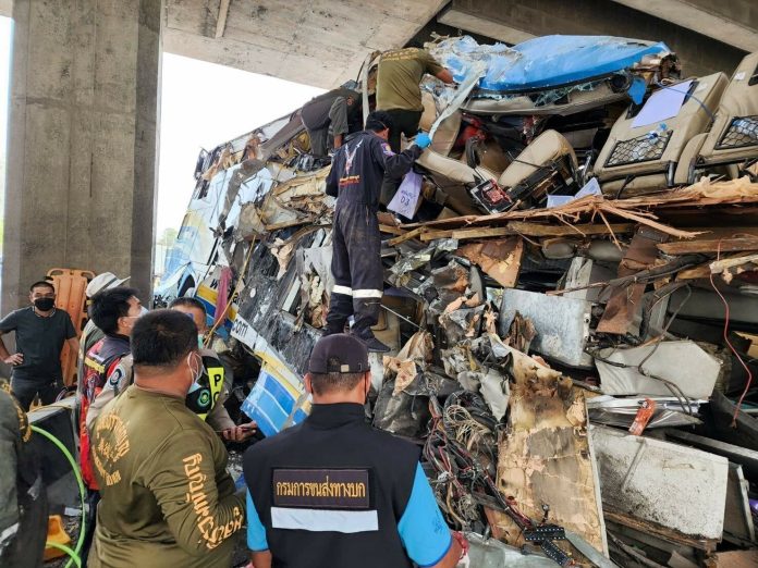 The driver says he was driving at 89 kilometres per hour i when he drifted off, causing the bus to hit the pillar on Mittraphap Road. The police have stated that 30 year old Narinsart Hongsa has acknowledge the allegations, and has confessed to being the driver of the bus at the scene and actually “taking methamphetamines”.