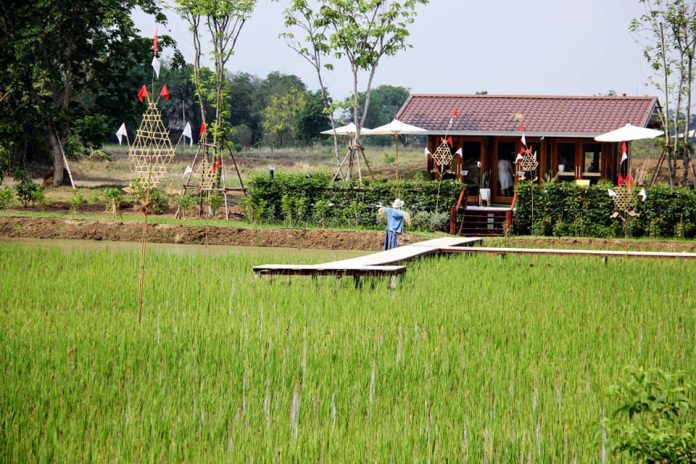 The second phase of the centre will start on the 30th of next Saturday, and the area will be expanded to include 5 more rai of rice fields and 2 rai of corn fields. Build a pond and canal around the field of about 2 rai to plant various plants such as rubber, padauk, Payong, Mahogany and Canada, totalling about 3,000 trees. In addition, in order to protect the plant species, the local species Chan-in tree is also planted, this unique ancient tree that is on the verge of extinction; the same tree can bear two types of fruits, the large spherical shape is called Luk, and the flat, spherical shape is called Asterisk.