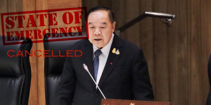 The proclamation of a state of emergency in all areas of the Kingdom on March 25, 2020, and the extension of the state of emergency in all parts of the Kingdom, shall be revoked. The state of emergency will remain in effect in the southern border provinces where it has been established.