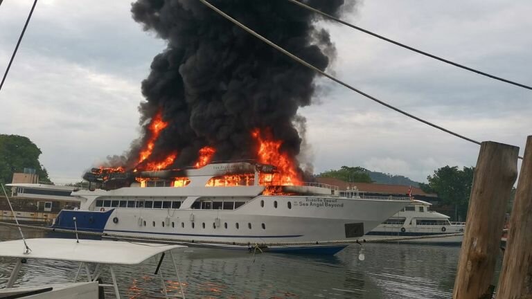 The Phuket Regional Harbor Master, Mr. Natchaphong Pranit, stated that the event occurred around 6:45 a.m. today (December 11). Coordinating with ship owners and connected parties, he received a report from port officials that the ship was on fire. While coordinating with the Deputy Governor of Phuket, the Deputy Director General of the Marine Department, and the fire department, quickly remove the other ships from the burning ship and lead the ships away from the coast as the fire rapidly spreads. Locals and local officials both became aware of the incident at roughly the same time.