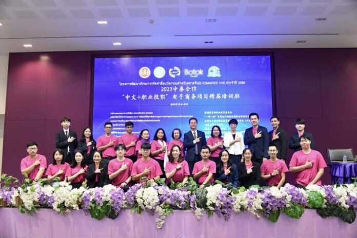 The five-day training program, which includes 65 students, covers topics such as the growth of the China-Thailand e-commerce business, e-commerce platform operations, short video production, e-commerce platform foundations, and network marketing.