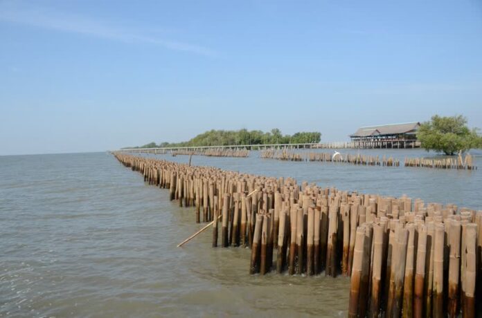 A combination of traditional concrete and bamboo or concrete poles, Minister Varawut proposed, would be placed along the shore to protect the land from waves.