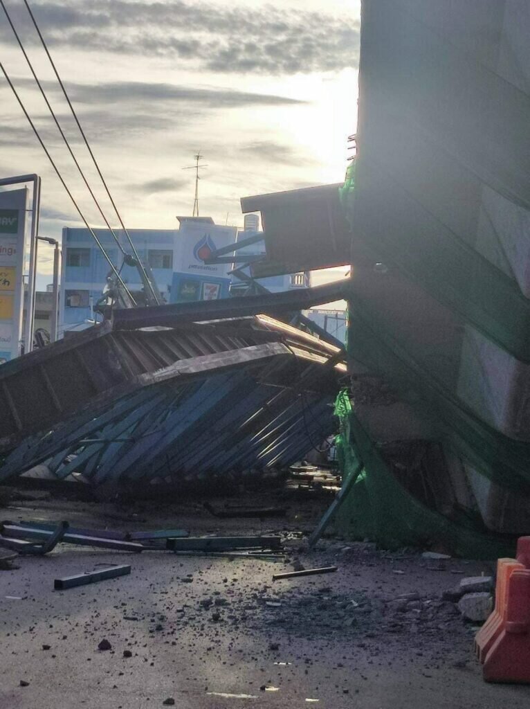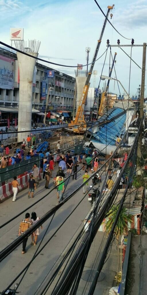 In a heart-wrenching turn of events, a bridge construction site in the bustling area of Lat Krabang, Bangkok, became the epicenter of a catastrophe when the structure unexpectedly gave way, claiming two lives and leaving several injured. The incident was first brought to public attention when the Rama 199 Radio Center received an urgent notification from the Lat Krabang Fire and Rescue Station, reporting the collapse of the bridge that had been under construction in front of the renowned department store in the Lat Krabang area, along Luang Phaeng Road in Tab Yao Subdistrict.