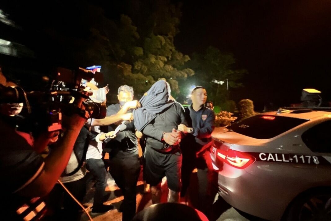 In a late-night operation, officers promptly transferred Mr. Olaf to Nong Prue Police Station at approximately 11:05 p.m. Covered in a cloak and wearing a mask to conceal his identity, Mr. Olaf remained tight-lipped, showing no inclination to respond to reporters’ inquiries. The police, understanding the need for an unobstructed pathway due to Mr. Olaf’s limited mobility, requested cooperation from the media. Once inside the interrogation room, he was isolated for questioning, separated from Madame Petra, another suspect who had surrendered earlier.