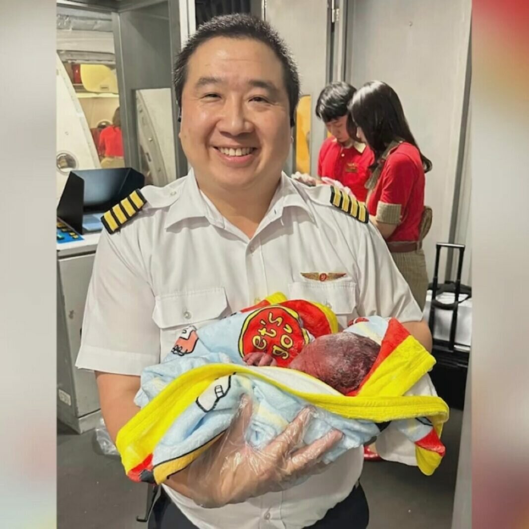 Jakarin, known for his expertise in navigating the skies rather than delivering babies, responded to the cabin crew’s distress call, leaving his co-pilot in charge of the aircraft while he rushed to assist the expectant mother. Despite lacking formal medical training beyond basic first aid, Jakarin approached the situation with calm and determination, successfully guiding the birth of a healthy baby boy thousands of feet above ground.