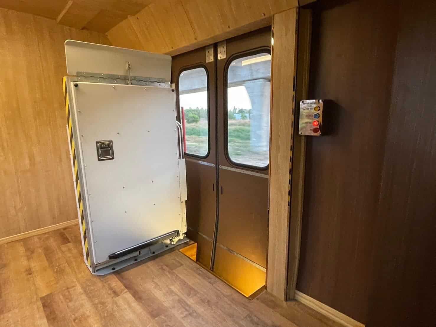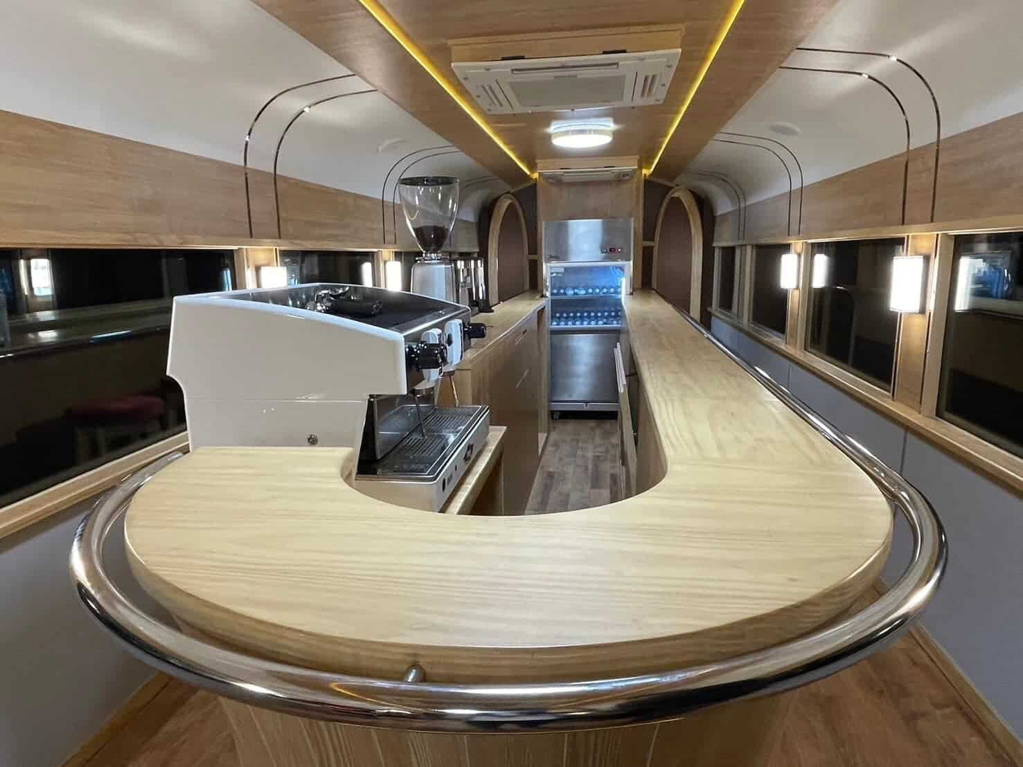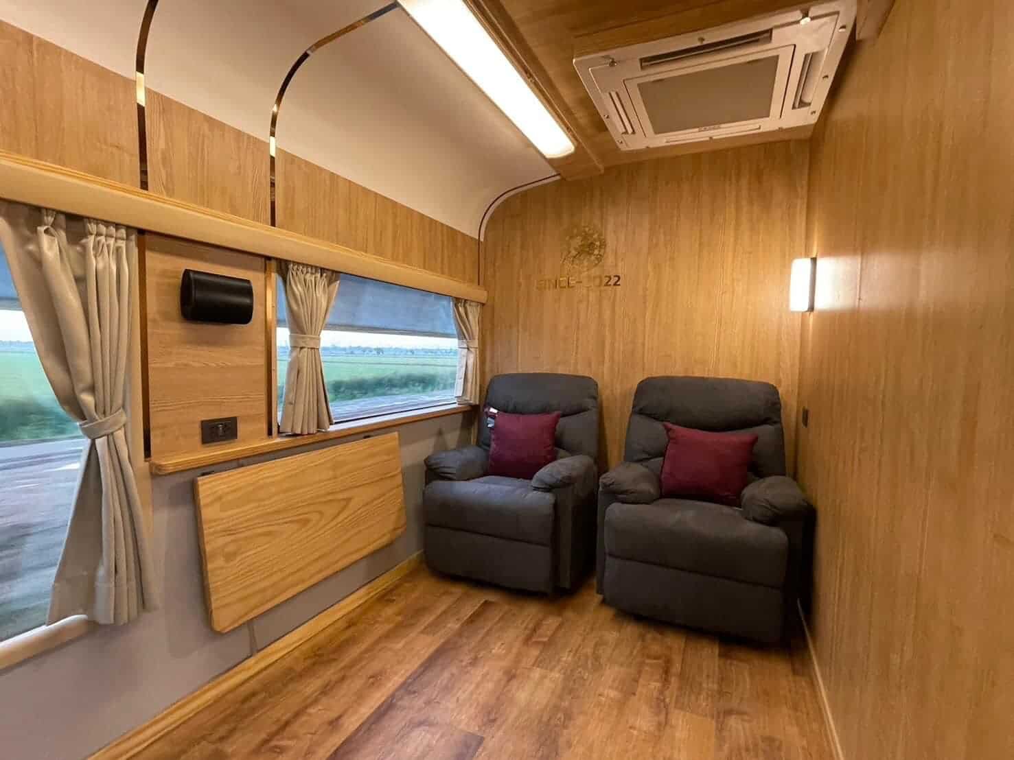 Internally, meticulous attention has been given to detail, with new seating upholstered in plush fabric, adjustable curtains, and LED lighting installed. Main decor elements are crafted from durable cedar wood, with foldable seats and brass-clad handrails, ensuring both elegance and functionality.