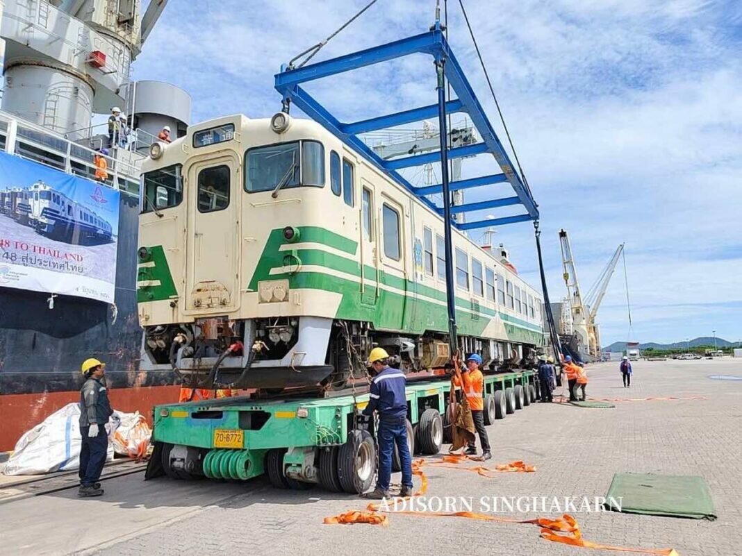 It was reported that a total of 20 diesel trains from JR East (East Japan Railway Company) have arrived in Thailand. The shipment, consisting of 11 Kiha 40 and 9 Kiha 48 trains, was transported from Niigata Port, Japan, to Laem Chabang Port, Chonburi Province. The transportation was managed by Green Generation Worldwide Co., Ltd., at a cost of 48.6 million baht.