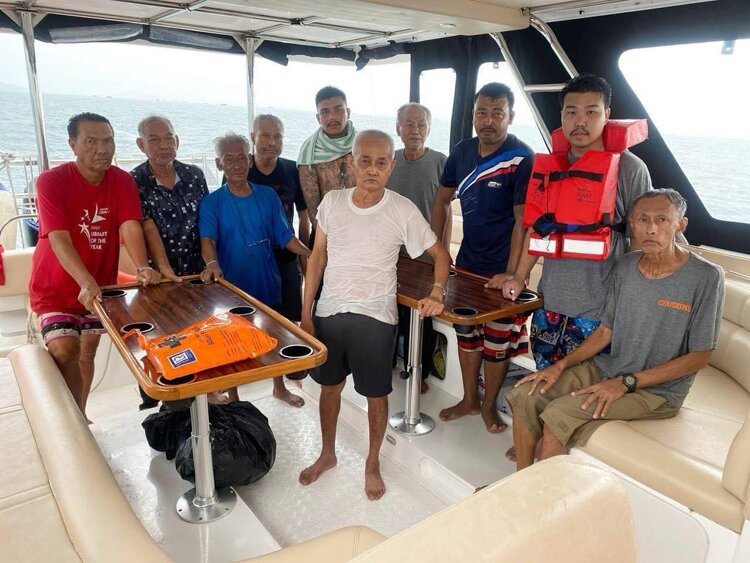 The rescued crew members have been identified as Sopon Wantong, Sorasak Sasrimuang, Santina Nagara, Preecha Panchoo, Prakob Vechkit, Adisak Boonkun, Daurang Palnak, Santi Boonya, Arichai Jairak, and Worrathun Chimsawat, ranging in age from 30 to 70.