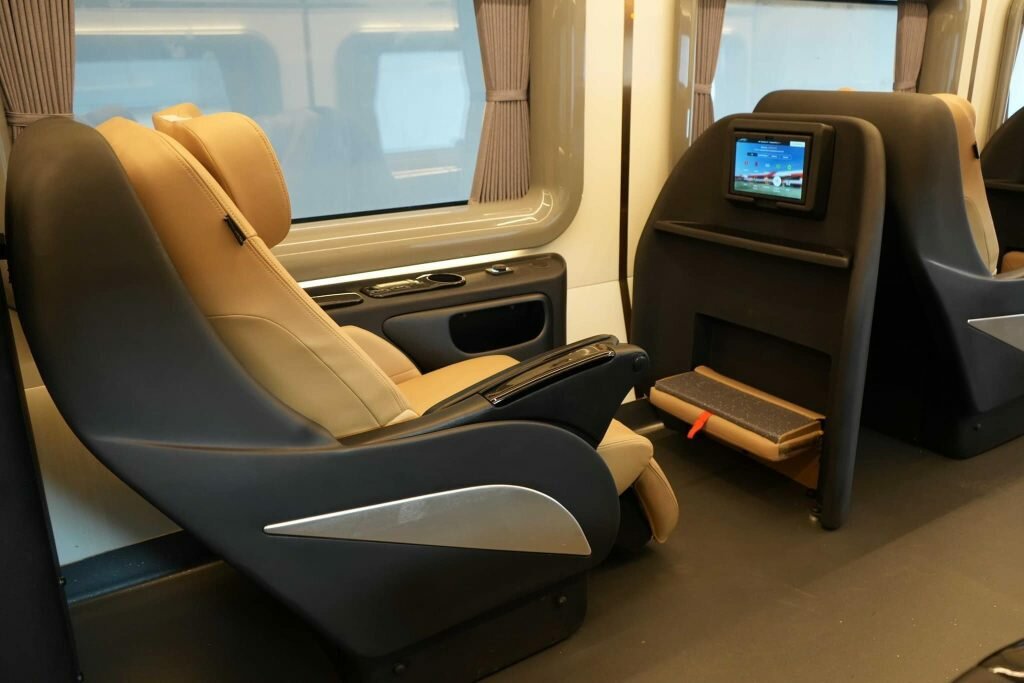 All seats feature private entertainment screens and robotic food delivery service, complemented by onboard climate-controlled restrooms and accessibility features for passengers with disabilities. Each unit costs approximately 32 million baht, significantly undercutting market prices around 50 million baht per unit.