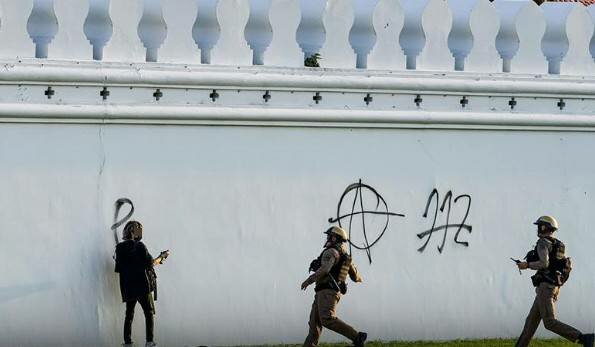 An activist was sentenced to eight months in prison by the Criminal Court today for vandalizing the wall of the Grand Palace with spray paint.