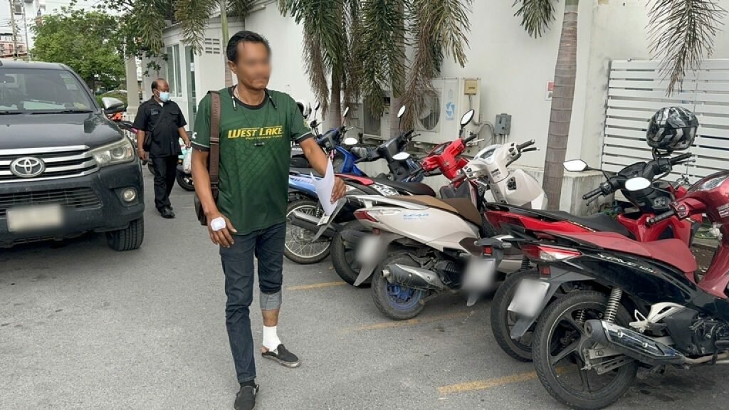 In the latest developments, reporters spoke with a 40-year-old company employee who revealed details of the incident. He recounted that while driving his black Yamaha motorcycle to work at around 7:30 a.m. to 8:00 a.m., he encountered the taxi in the far right lane with congested traffic. The taxi swerved into his lane, causing him to react angrily. He admitted to kicking the taxi’s hood out of frustration. The situation escalated when the taxi reversed and collided with his motorcycle on the Rama IV Bridge, causing him injuries.