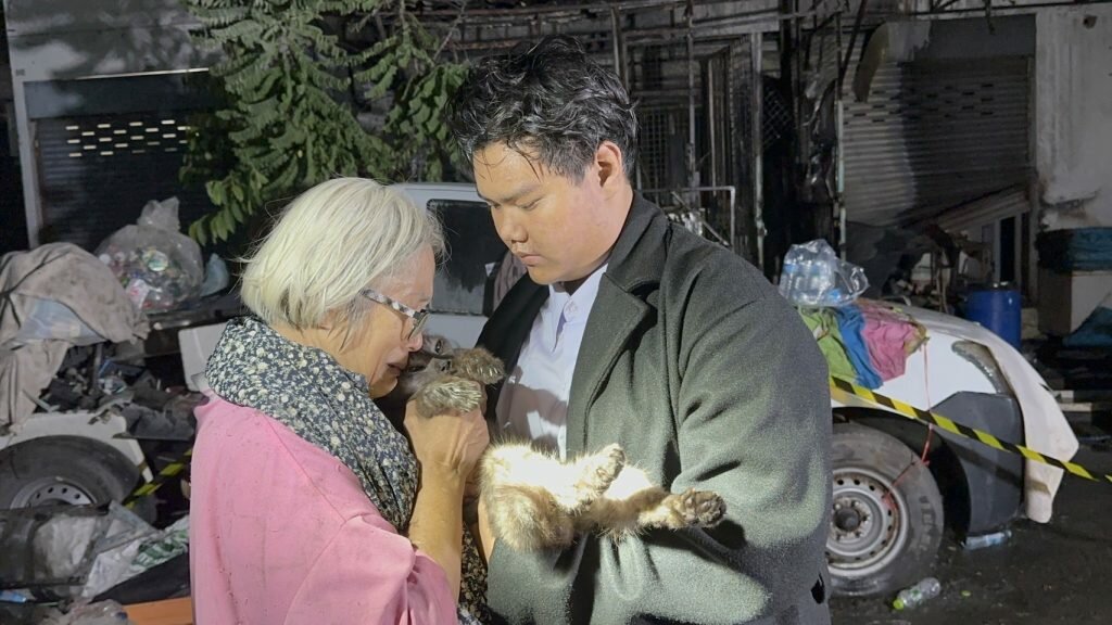 Photographs by Puttisan Kaewbuadee captured the aftermath of the fire, depicting the damage to the building and the emotional toll on the owner. Local officials and fire personnel were present at the scene, assessing the situation and providing necessary support.