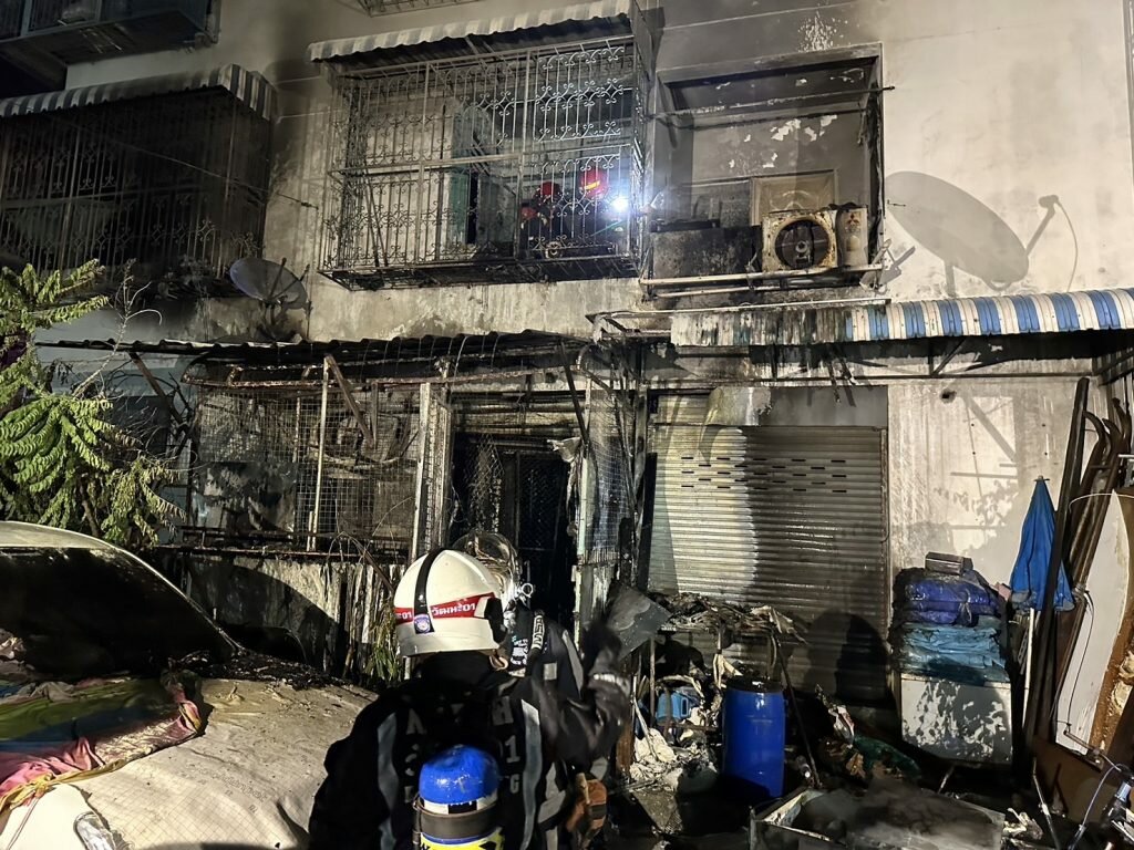 Late Sunday night, a fire erupted in a four-story commercial building located on Soi Chang Akat Uthit 15 in Don Mueang District, Bangkok. The blaze, which broke out in a residential area, was quickly addressed by local firefighters who managed to control the flames within 10 minutes.
