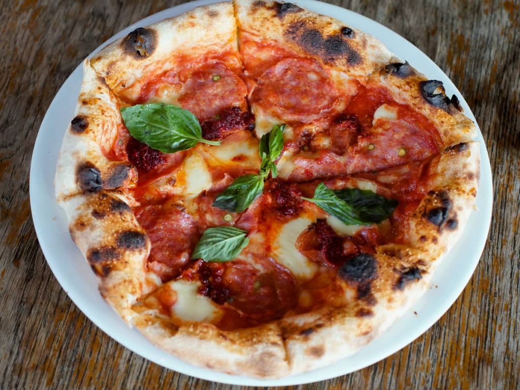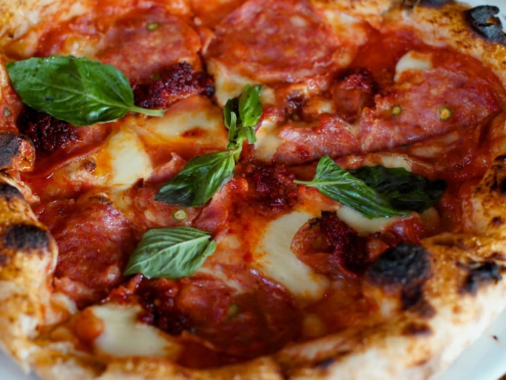 The Hot and Spicy Salami Pizza at The Londoner is a study in culinary balance. The spicy salami (house IPA Salami) delivers a robust heat that is immediately softened by the creaminess of the melted cheese. The tangy tomato sauce provides a zesty foundation, while additional toppings like Nduja Calabrese (spicy spreadable salami) enhance the overall heat, making this a pizza that truly satisfies those with a penchant for bold flavors. The interplay of spicy, savory, and tangy elements ensures each bite is both dynamic and gratifying.