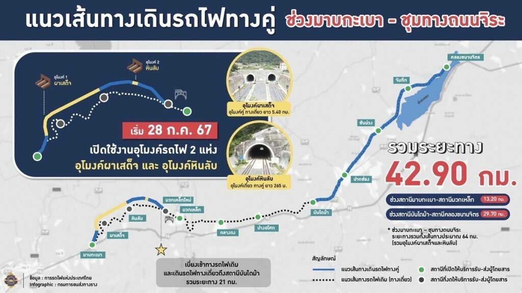 To address the dust problem, the SRT has instructed the contractor to carry out a thorough cleaning of the tunnel before it reopens on August 12, 2024. During this closure, train services will revert to the previous route, which extends the travel distance by 18 kilometers, covering the old path from Map Kabao through Pha Sadet and Hin Lab to Muak Lek.