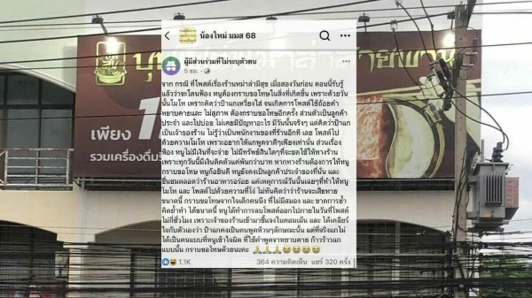 Subsequently, the customer who posted the critical review issued a public apology, admitting that the post was made in anger and that they had merely wanted the staff to communicate more politely. The customer expressed a willingness to apologize formally if necessary and stated their intention to continue patronizing the restaurant. However, they mentioned their financial inability to compensate the restaurant, noting that they had only a little over a thousand baht.