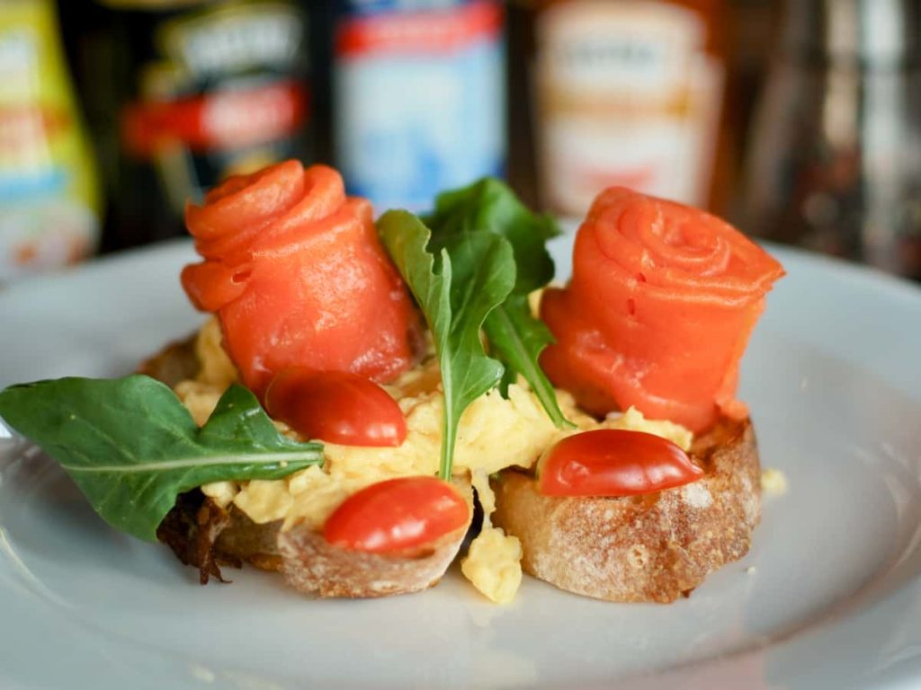 On the lighter side, the Smoked Salmon with Scrambled Eggs on Toast offers a more refined option. Here, the rich, silky texture of the scrambled eggs contrasts beautifully with the subtle smokiness of the salmon. The dish, served on crisp toast, feels thoughtful without being fussy. The eggs are cooked to a soft, almost creamy consistency, which complements the delicate flavor of the salmon. It’s a dish that balances richness and lightness well, ideal for a more leisurely start to the day or even a mid-afternoon bite. A scattering of fresh herbs, brings a bright note to the ensemble, adding just the right amount of freshness to cut through the richness.